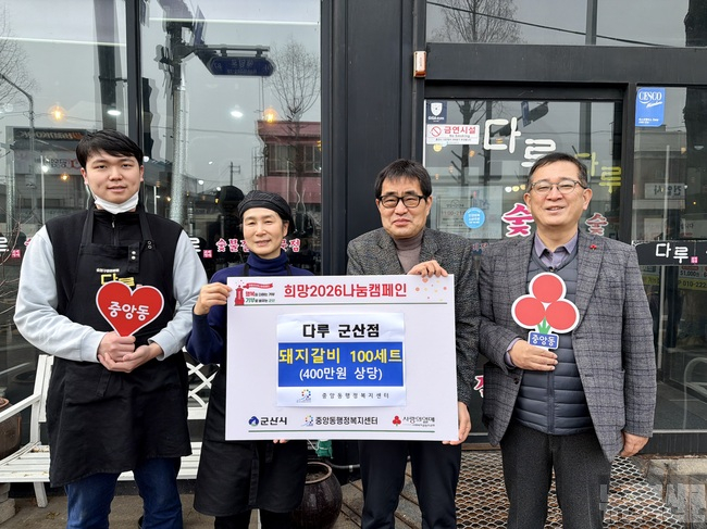 김종훈 중앙동장은 “지역 이웃을 위해 따뜻한 마음을 보내주신 다루 군산점 사장님께 감사드린다”며 “후원해주신 돼지갈비는 도움이 필요한 이웃들에게 소중한 한 끼로 전달하겠다”고 말했다.