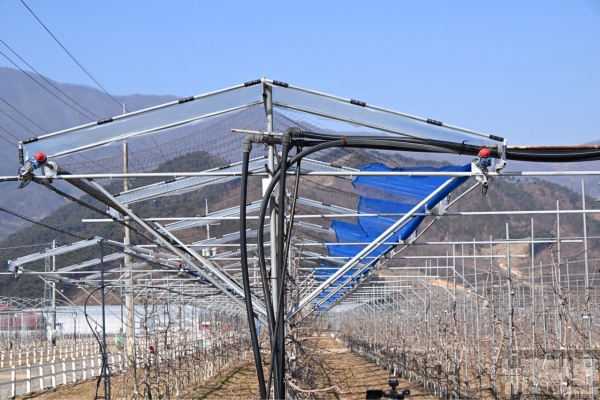 사과 농가에 설치된 차광시설