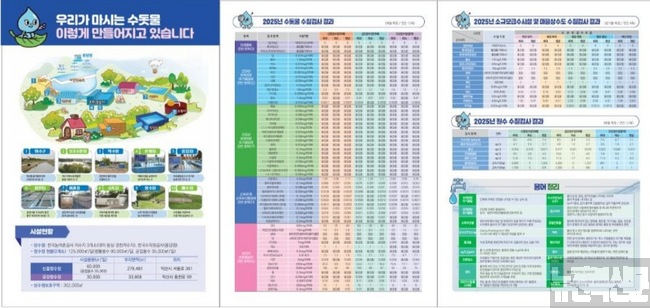 이번 보고서에는 우리 집 수돗물이 어디서 오는지부터 원수(수돗물의 원료가 되는 물)와 정수(깨끗이 걸러낸 물)의 검사 결과까지 상세히 담겼다. 특히 도표와 그림을 활용해 복잡한 수질 정보와 상수도 상식을 누구나 이해하기 쉽게 정리했다.