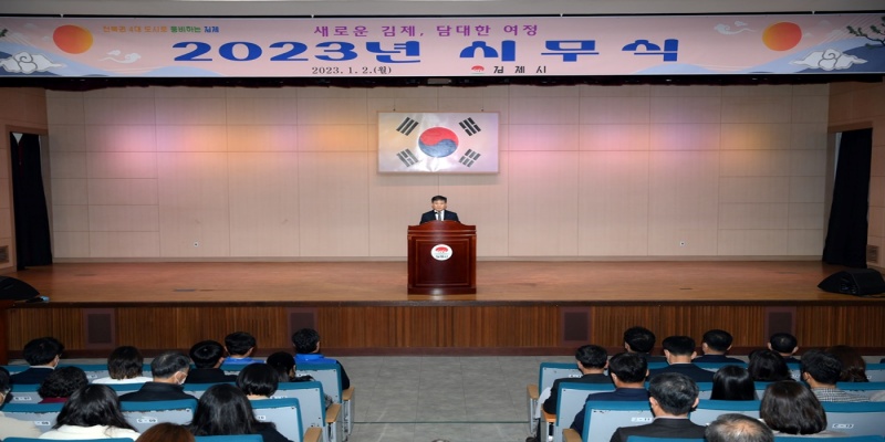 한편, 김제시는 시무식 시작에 앞서 간부공무원과 김제시의회 의원들이 군경묘지 및 성산공원 충혼탑 참배를 했으며, 시무식 종료 후에는 정성주 김제시장을 비롯한 간부공무원들이 시의회와 노동조합, 출입기자와의 간담 자리를 마련해 2023년 시정현안에 대하여 소통하는 시간을 가졌다.