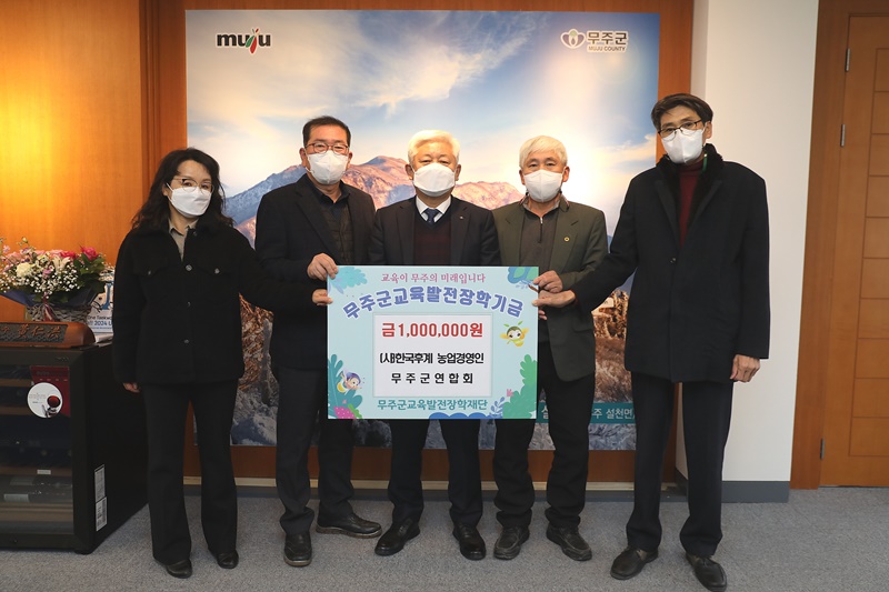 (사)한국후계농업경영인 무주군연합회 김성곤 회장은 “인재 육성에 조금이나마 힘을 보태기 위해 회원들의 성금을 모아 전달하는 것”이라며 “무주군에 우수한 인재가 자랄 수 있는 자양분이 되길 바란다“고 전했다.