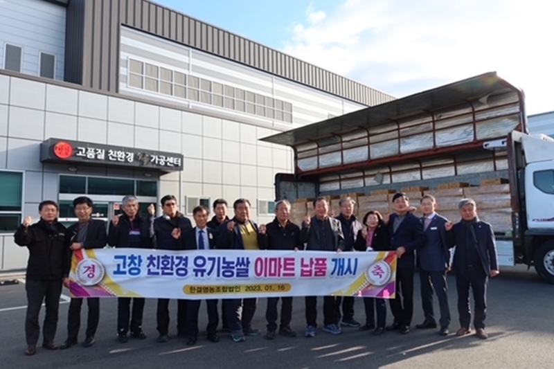 [고창=뉴전북] 전북 고창군이 고수면 한결영농조합법인 친환경 가공센터에서 ‘유기농 황토 쌀’을 전국 이마트 매장으로 보내는 첫 출하식을 가졌다.