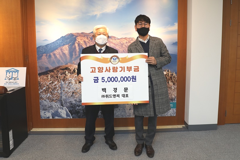 백경문 대표는 지난 13일 군청을 방문해 기부의사를 밝히고 고향사랑기부제 한도 최고 금액인 5백만 원을 군에 기탁했다.