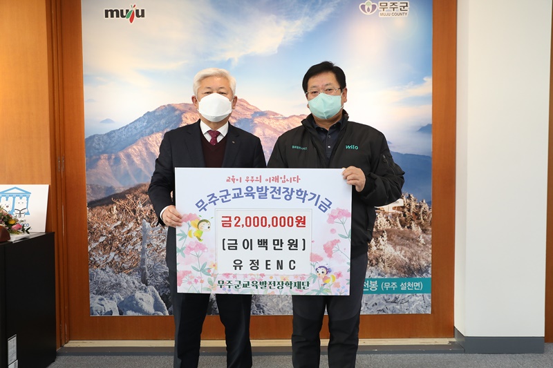 [무주=뉴전북] 무주군교육발전장학재단에 미래세대를 위한 장학금 기탁이 이어졌다. 18일 유정ENG 2백만 원, ㈜한국건설 1백만 원, 삼선회에서 1백만 원을 무주군교육발전장학재단에 기탁했다.