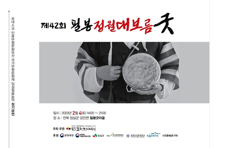 [임실=뉴전북] 마흔 두번째 맞이하는 필봉정월대보름굿은 올해도 변함없이 전라북도 임실군 강진면 필봉마을에서 개최된다. 계묘년(癸卯年) 검은 토끼해를 맞아 만복을 기원하며 신명나는 굿판을 펼칠 예정이다. 인류무형문화유산인 필봉농악은 농악 본연의 가치와 형태를 잘 간직해 온 임실필봉농악보존회(보존회장 양진성)가 주최/주관한다.