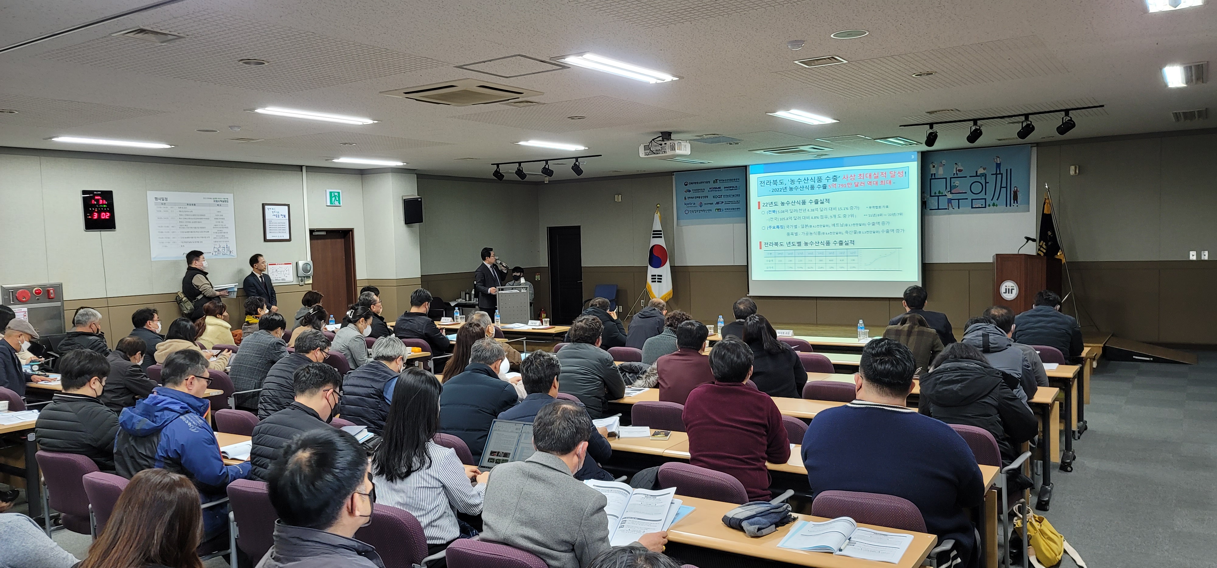 [도정=뉴전북] 전북도는 지난달 31일 전북바이오융합산업진흥원 비즈니스센터 2층 대회의실에서 도내 농생명․바이오․식품기업 및 기관 등 200여개사가 참석한 가운데, “2023년 전북 농식품기업 지원 시책 및 수출 정책 설명회”를 개최했다.