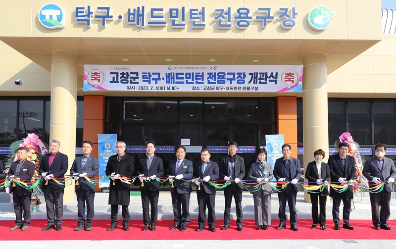 6일 고창군에 따르면 지난 4일 오후 심덕섭 고창군수와 고창군의회 임정호 군의장을 비롯한 기관사회단체장, 주민 등 100여명이 참석한 가운데 ‘탁구·배드민턴 전용구장’ 개관식이 성대하게 열렸다.