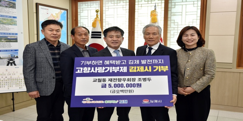 한편, 조병두 재전김제향우회장은 고향사랑기부제 동참에 따른 답례품(150만원)을관내 교월동행정복지센터에 재기부해, 저소득 및 사회적 취약계층 지원에 도움이 되길 희망했다.