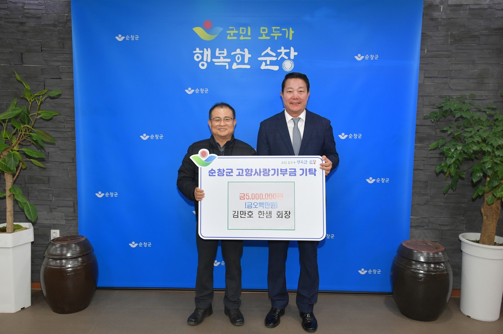 최영일 순창군수는 “순창군 발전을 위해 전국 각지 출향인사들의 적극적인 참여에 감사드린다”라며 “김만호 회장을 비롯한 기부자들의 고향사랑이 지역의 발전과 군민 편익 증진으로 이어지도록 적극 노력하겠다 “라고 화답했다.