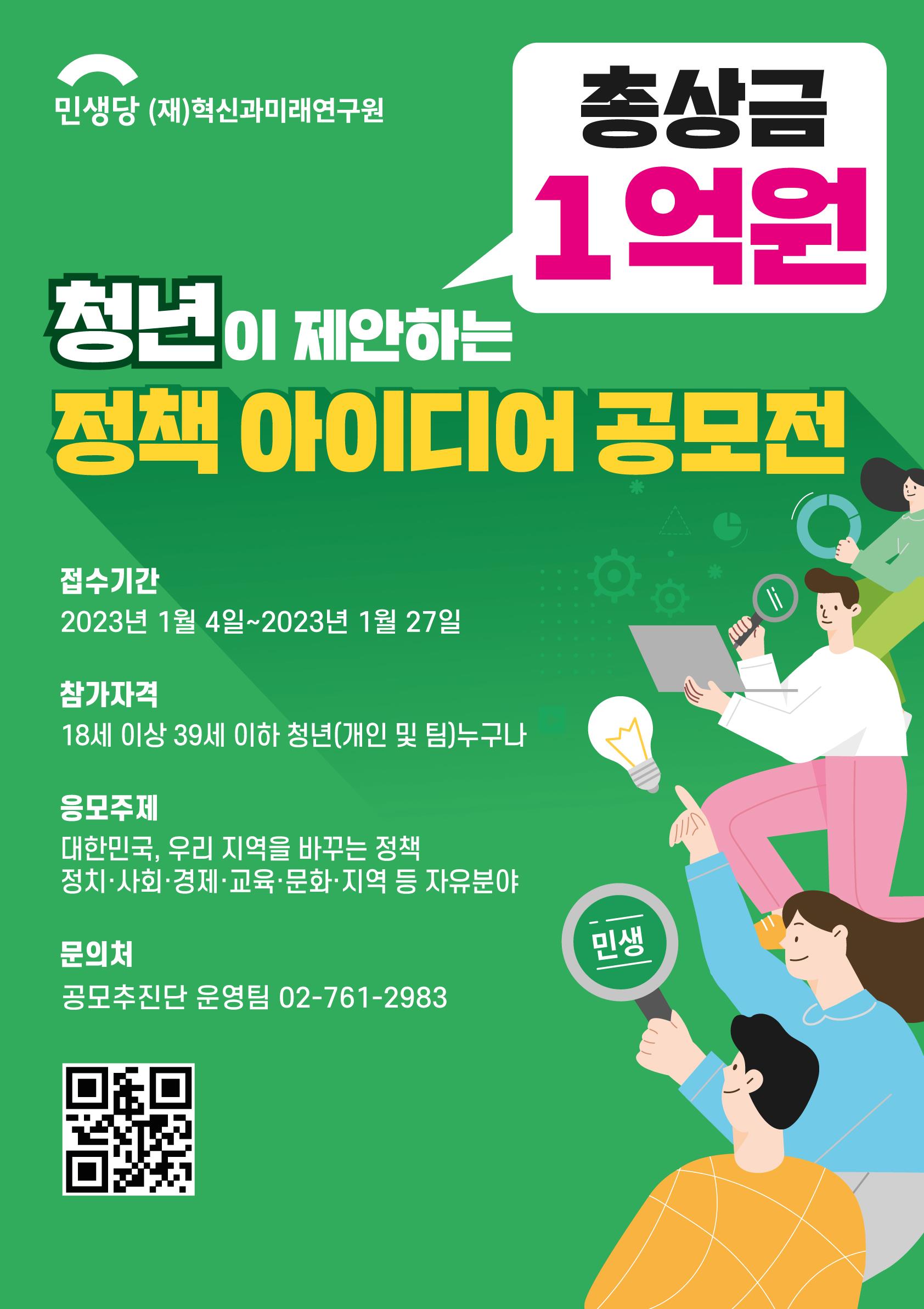 [정치=뉴전북] 민생당 부설기관인 ‘재단법인 혁신과 미래연구원’에서 개최한 총상금 1억 원의 ‘청년이 제안하는 정책 아이디어 공모전’접수을 마감했다.