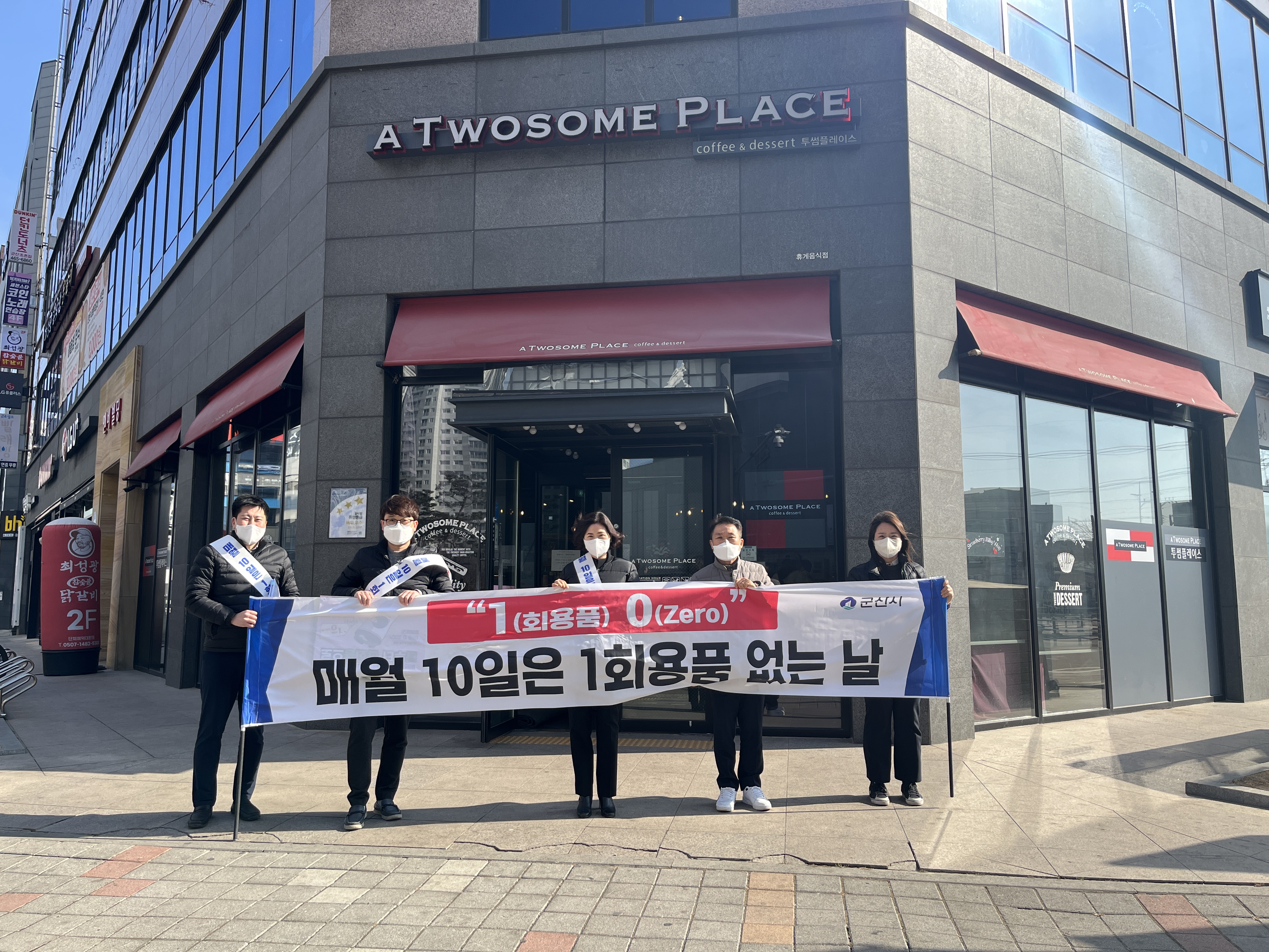 시는 매월 10일을 ‘1회용품 없는 날로 정해 현장 캠페인을 진행하고 있다. 이번 캠페인은 지난 8일 롯데몰(군산점) 인근 상점을 돌며 1회용품 사용규제 강화(‘23.11.24)로 인한 매장 내 종이컵, 플라스틱 빨대, 젓는 막대 사용 금지 등에 대해 집중 홍보했다.