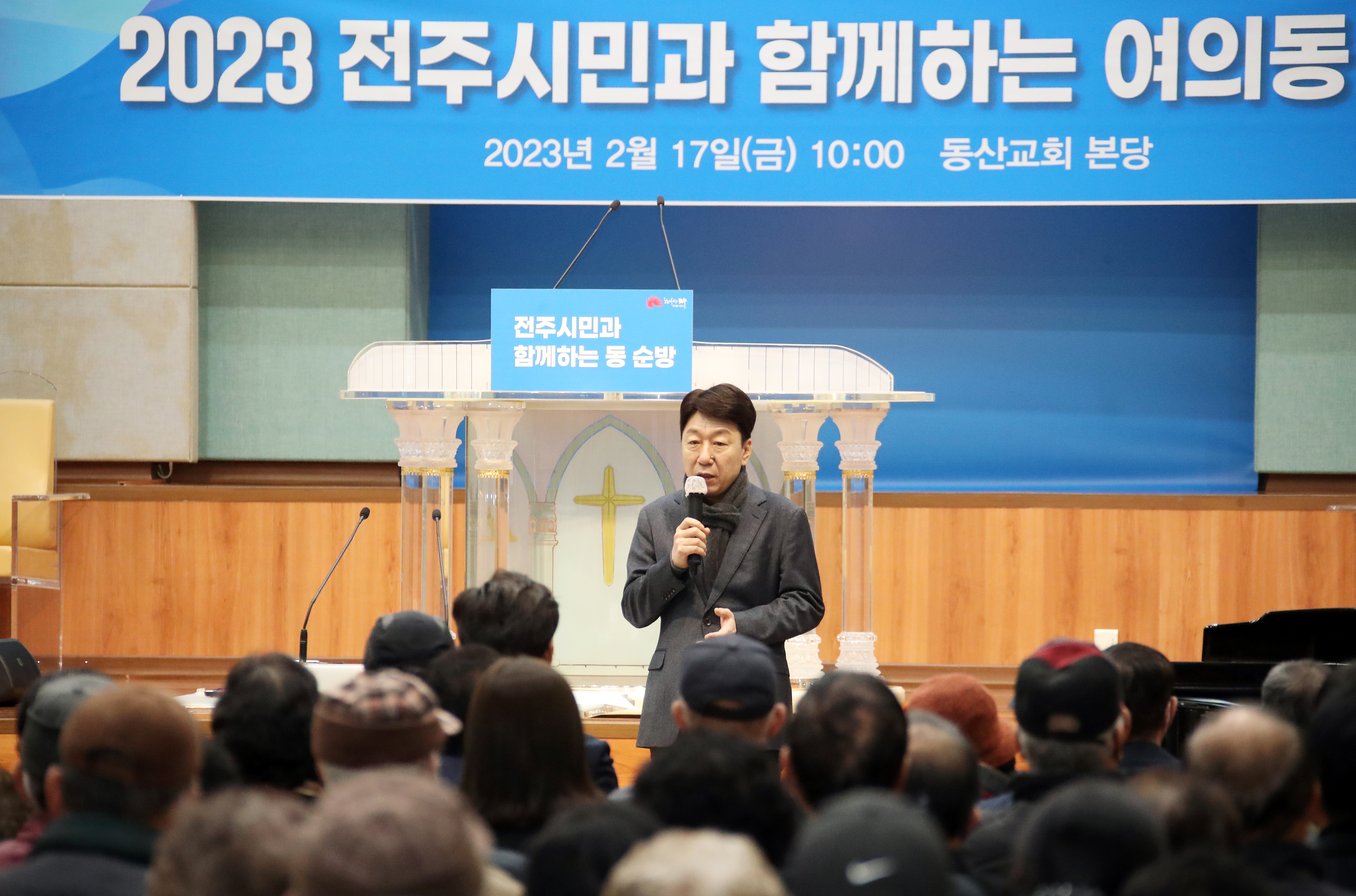 우범기 시장은 17일 오전과 오후 각각 여의동 동산교회와 송천1동 사랑의 교회를 차례로 방문해 시민들과 대화의 시간을 가졌다.