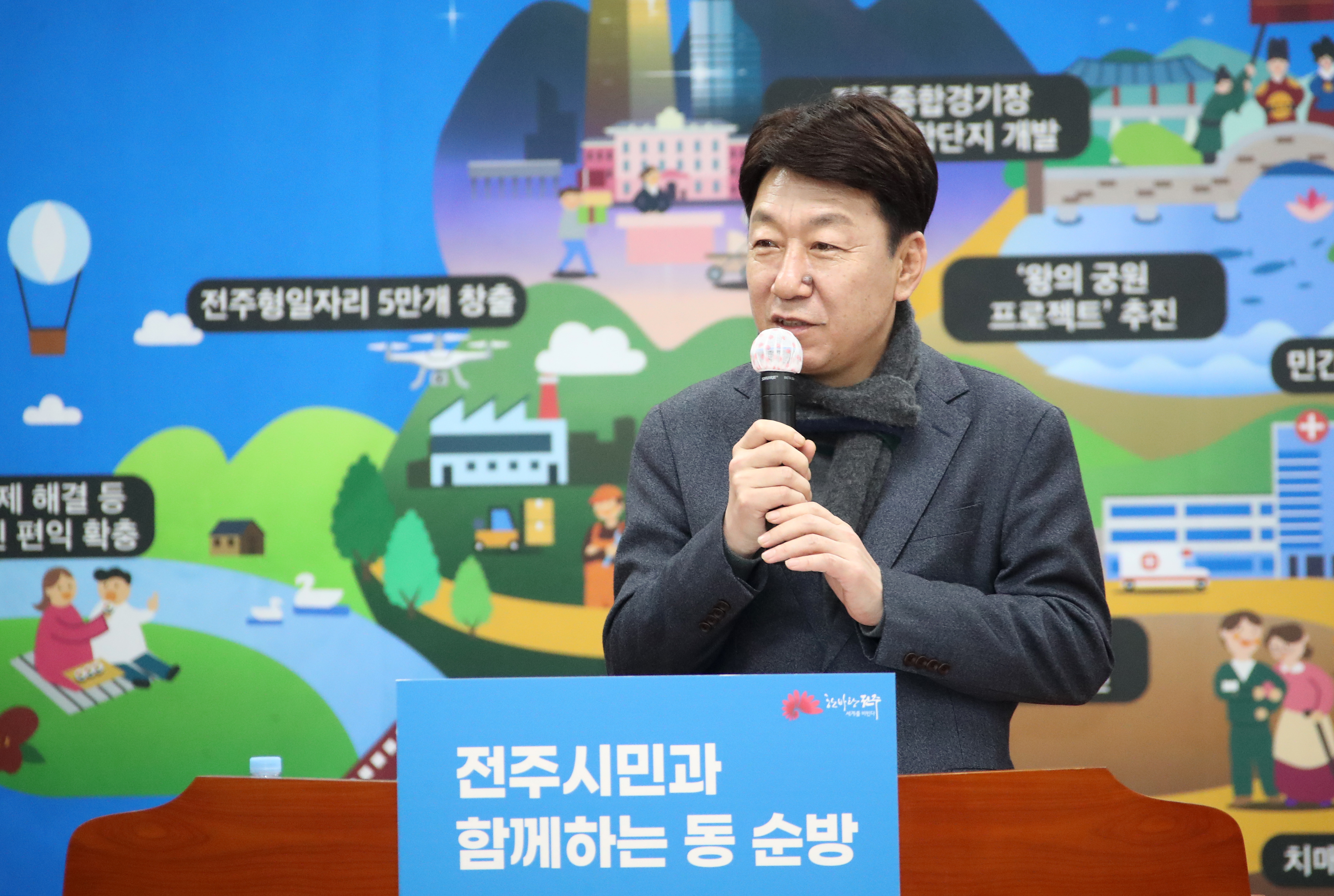 [전주=뉴전북] 우범기 전주시장이 시민들의 삶 속으로 찾아가 전주의 위대한 도약과 대변혁을 위한 의견을 듣는 동 순방 일정을 이어가고 있다.