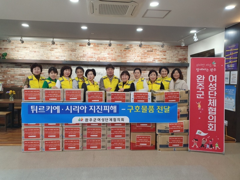 [완주=뉴전북]완주군 여성단체협의회(회장 천경욱)가 대규모 지진으로 피해를 입은 튀르키예 이재민을 돕기 위한 구호 물품을 전달했다.