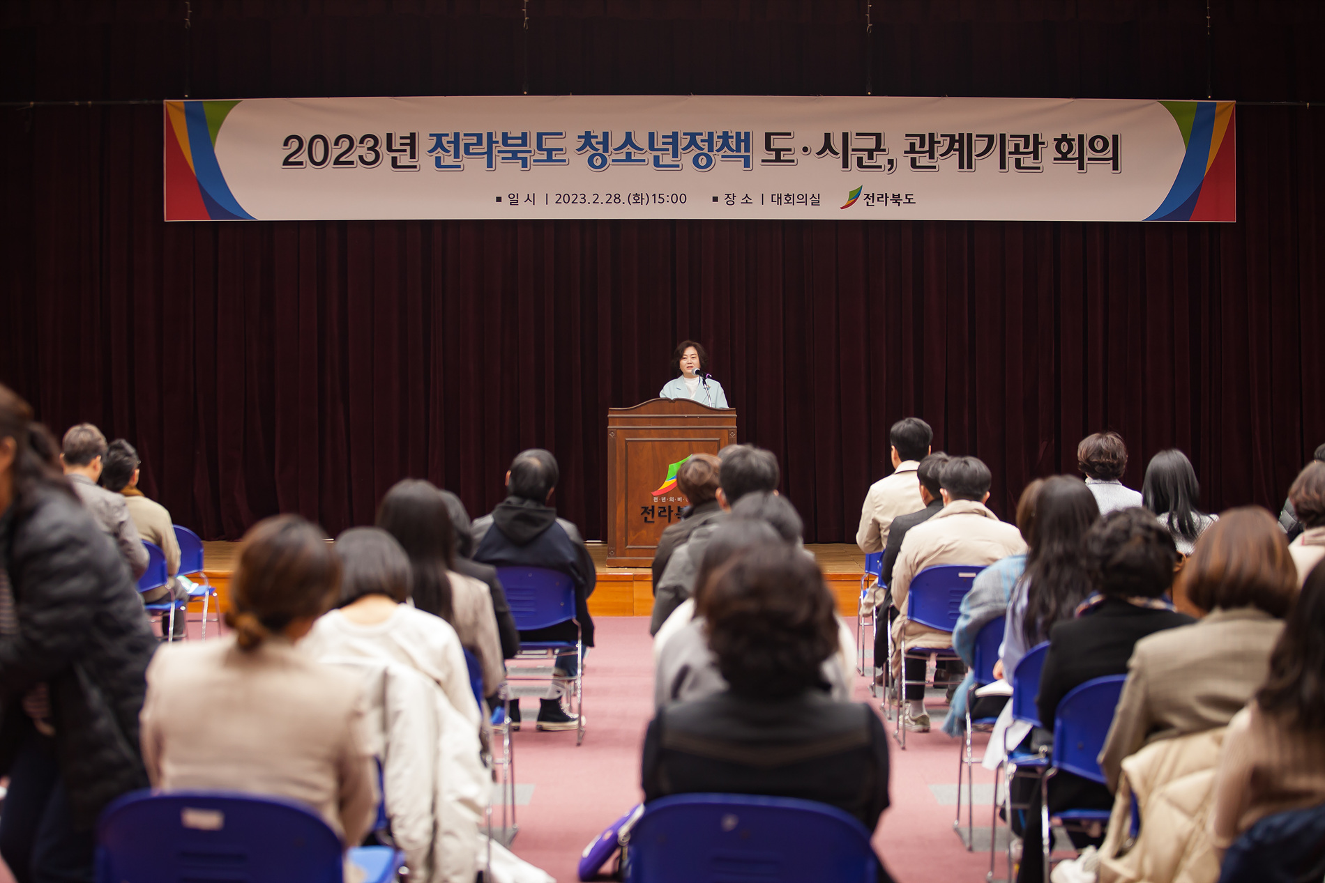 [도정=뉴전북] 전북도는 지난 28일 도청 대회의실에서 도군 청소년업무 담당 공무원과 청소년 보호활동기관 관계자 150여 명이 참여한 가운데 제7차 청소년정책 기본계획과 2023년도 주요 정책사업에 대한 설명회를 개최했다.
