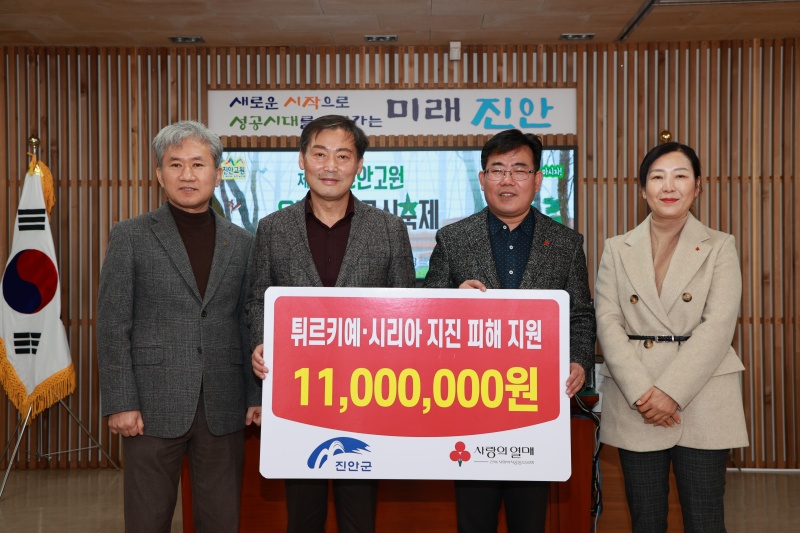 [진안=뉴전북]진안군은 2일 군민, 공직자 직원들이 튀르키예·시리아 지진피해 복구를 위해 모금한 성금을 전북사회복지공동모금회에 전달했다.