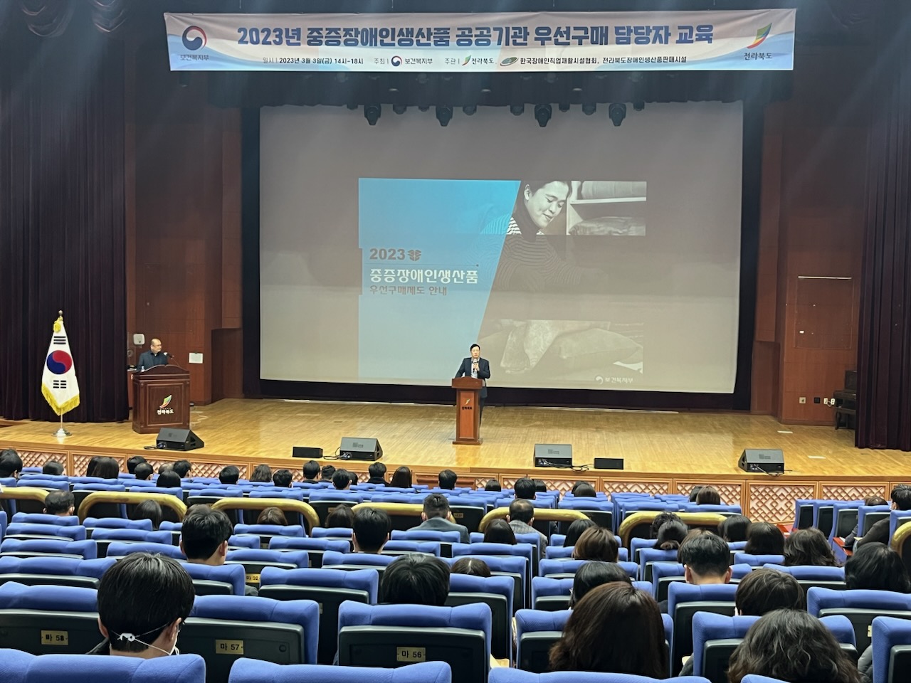 [도정=뉴전북] 전라북도는 중증장애인생산품 우선구매 특별법에 따라 보건복지부에서 공공기관 중증장애인생산품 우선구매 담당자를 대상으로 전국 순회 교육을 지난 3일 전북도청에서 진행했다.