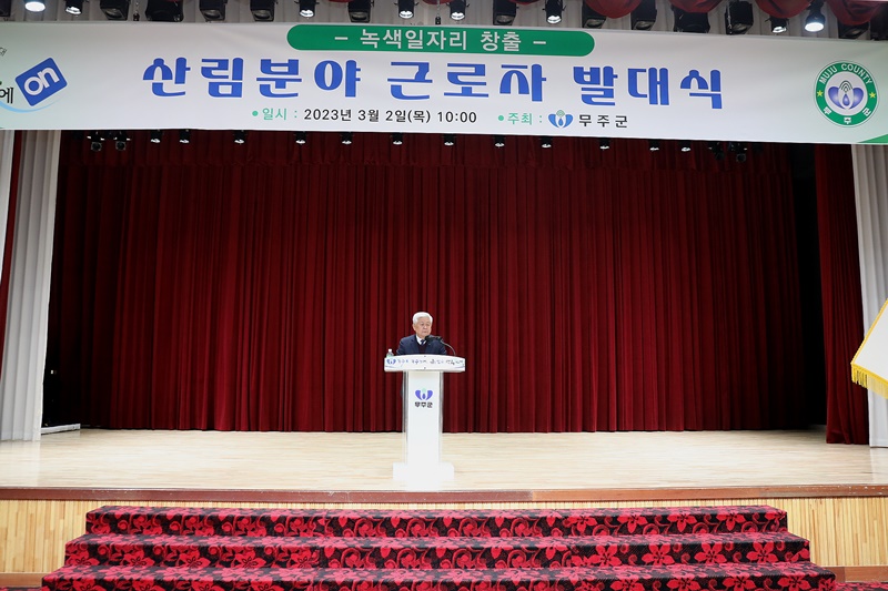 사업추진에 앞서, 지난 2일 무주읍 전통생활문화체험관에서 황인홍 군수를 비롯해 참여자들이 참석한 가운데 무주군 산림분야 녹색일자리 발대식을 갖고 새로운 일자리에 대한 격려와 희망을 주고, 녹색일자리 창출을 통한 경제난 극복 의지를 다짐했다.