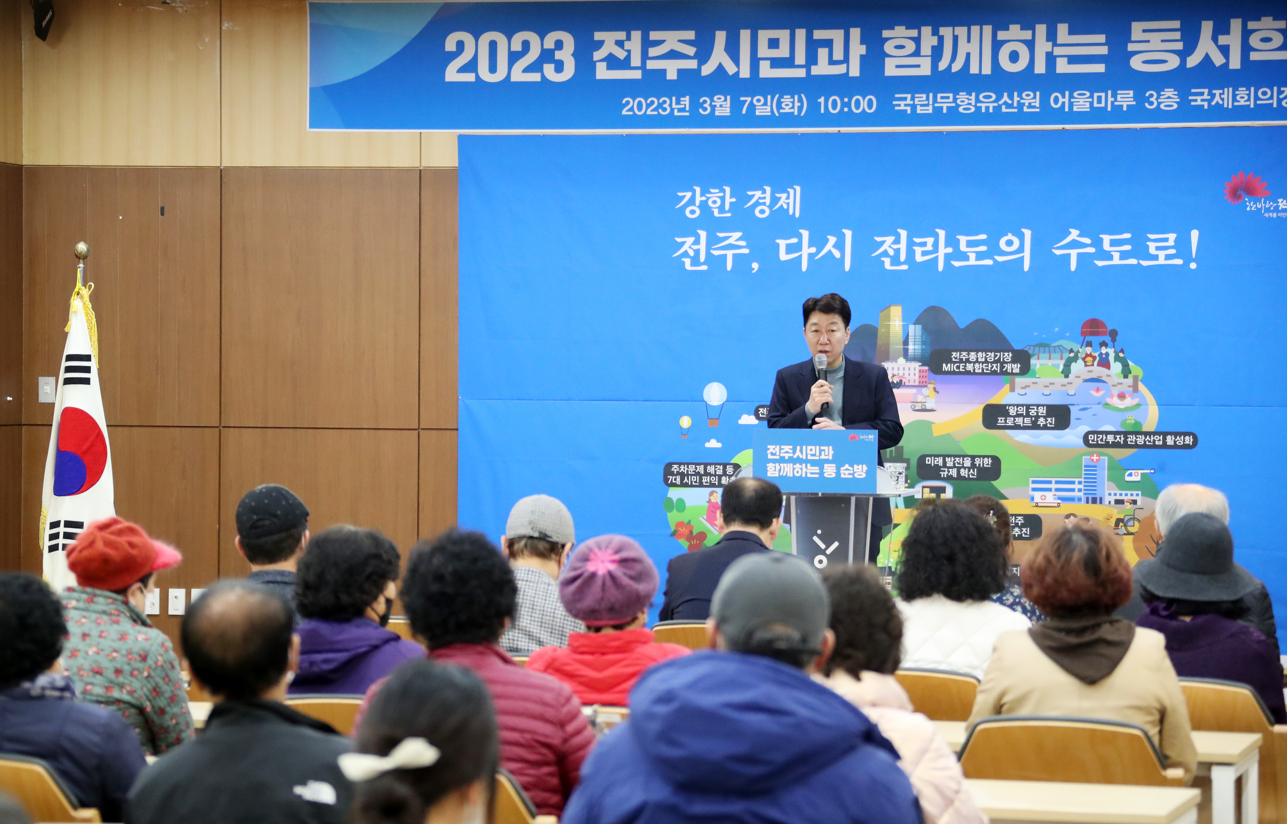 [전주=뉴전북] 우범기 전주시장이 문화도시 전주의 전통과 예술의 중심지로 자리매김한 동남부권을 찾아가 전주 대변혁과 더 큰 도약을 위한 시민들의 목소리에 귀를 기울였다.