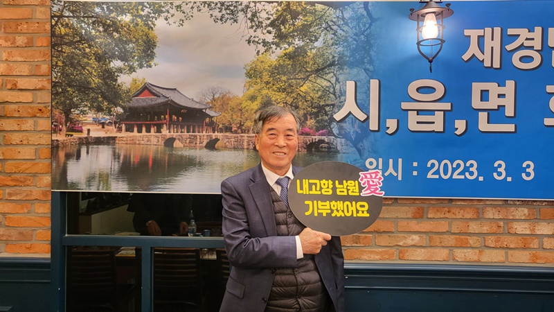 [남원=뉴전북] 이훈 재경산동향우회장이 3월 7일 남원시에 고액인 고향사랑기부금 300만원을 기부했다.