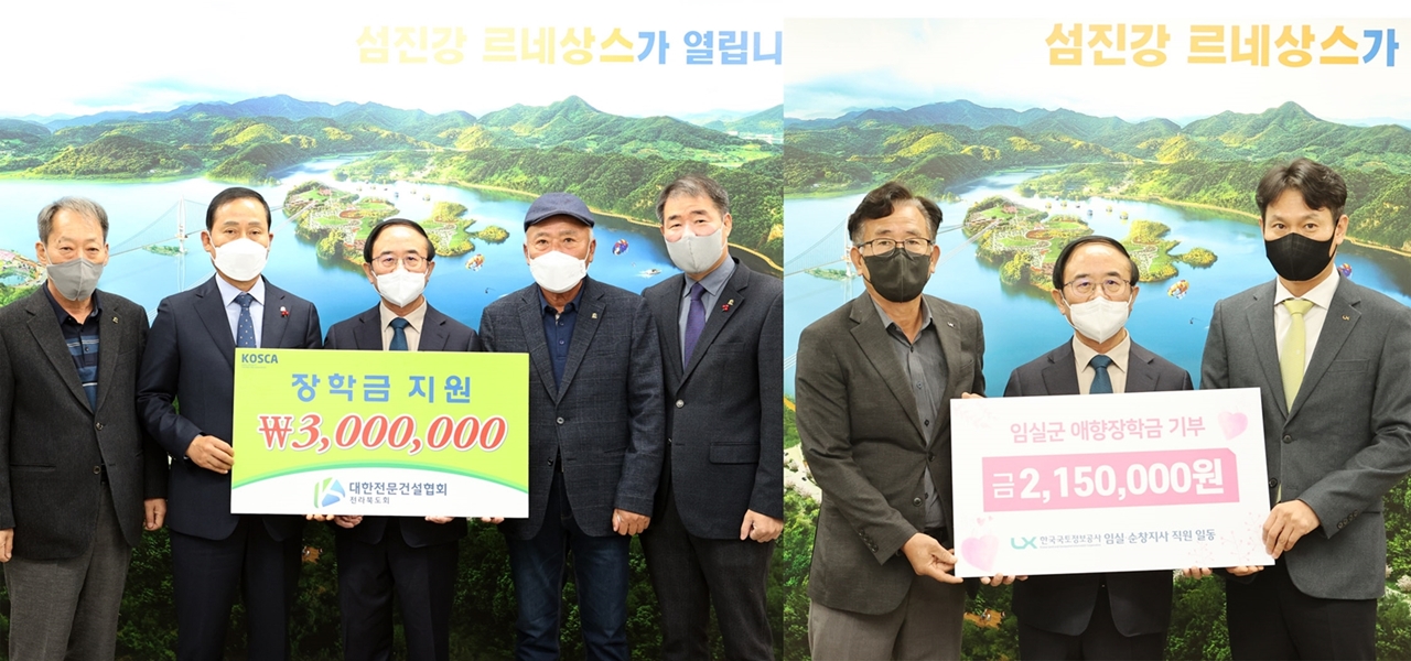 군은 (사)한국생활개선 임실군연합회(회장 정현옥) 200만 원, 임실읍 김성권․이난희 부부가 100만 원의 장학금을 임실군을 방문해 임실군애향장학회 이사장인 심 민 군수에게 전달했다고 14일 밝혔다.