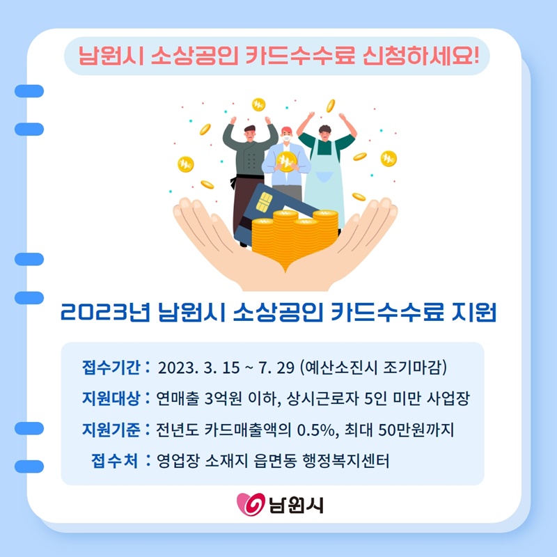 | 남원시 소상공인 카드수수료 최대 50만원까지 지원 |