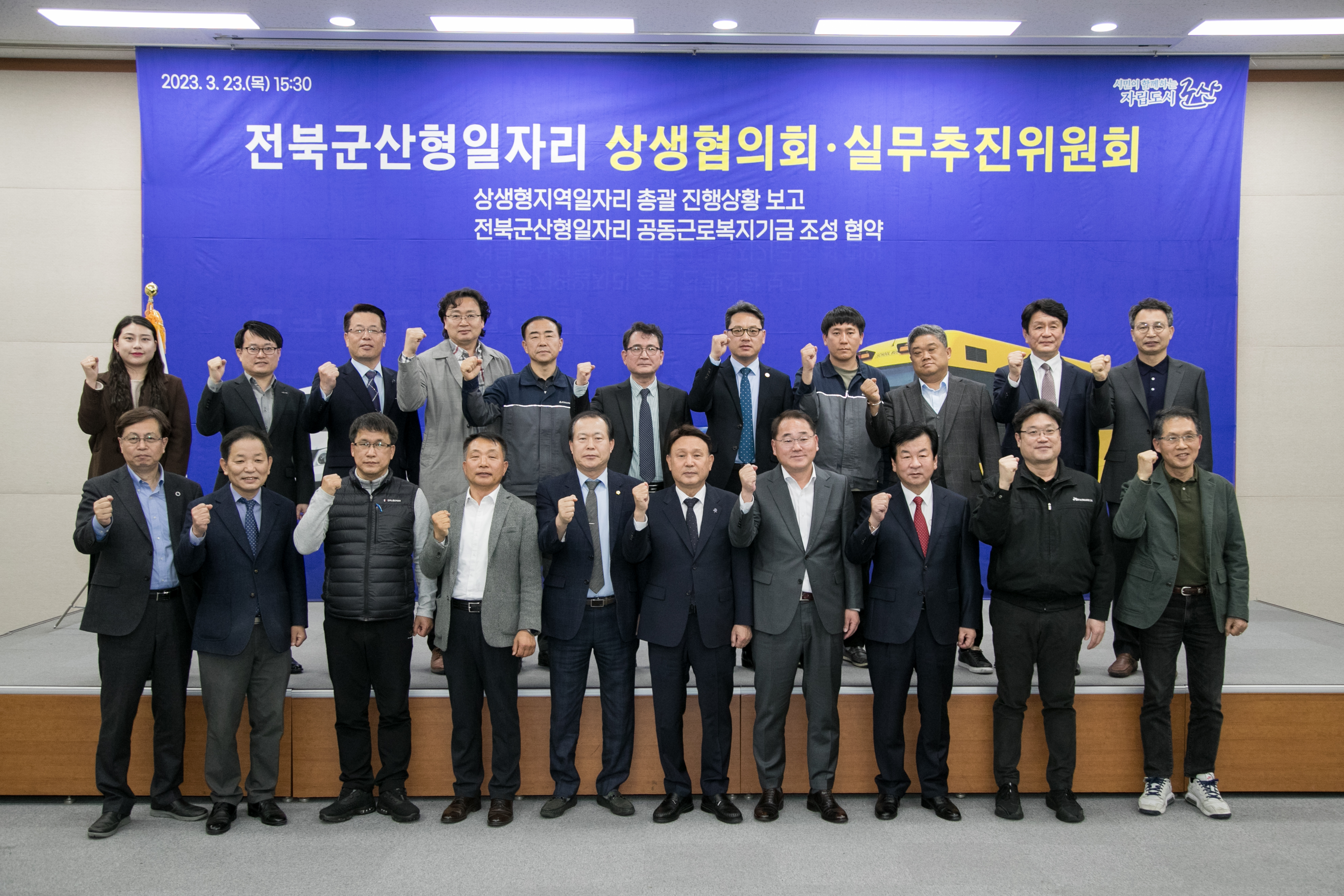 [도정=뉴전북] 전라북도와 군산시는 지난 23일 ㈜명신 기술교육원에서 2023년 상반기 전북 군산형 일자리 상생협의회 및 실무추진위원회 합동회의를 개최했다.
