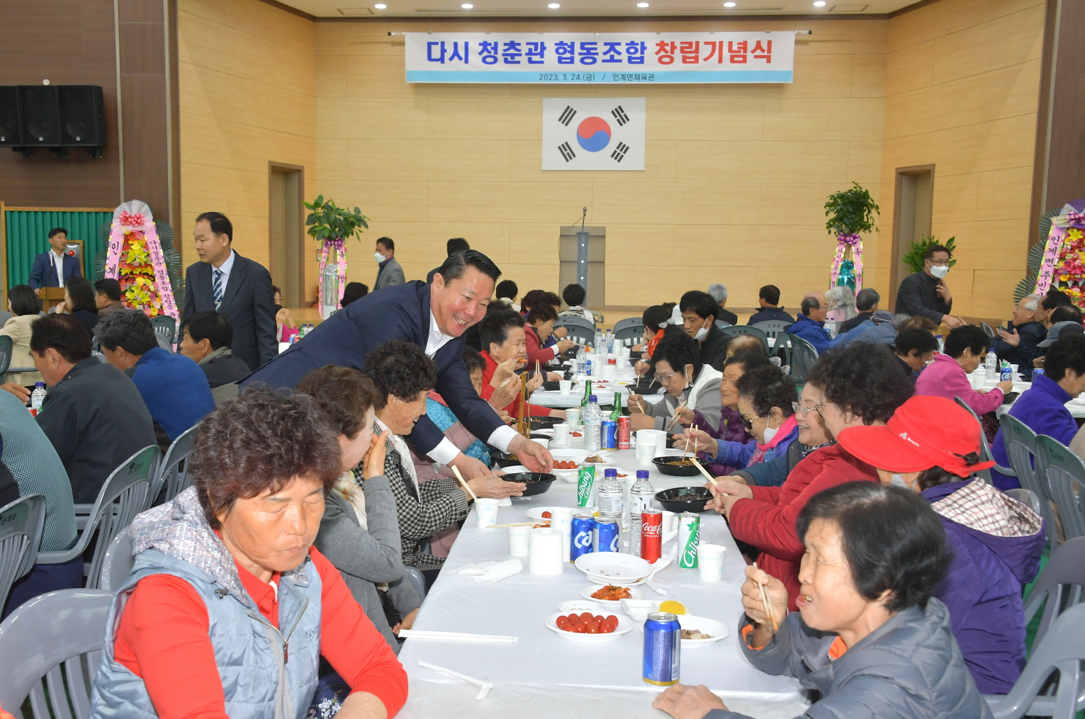 [순창=뉴전북] 전북 순창군 다시 청춘관 협동조합(조합장 이월자)은 지난 24일 인계면 체육관에서 창립기념식과 함께 음식나눔 행사를 진행했다.
