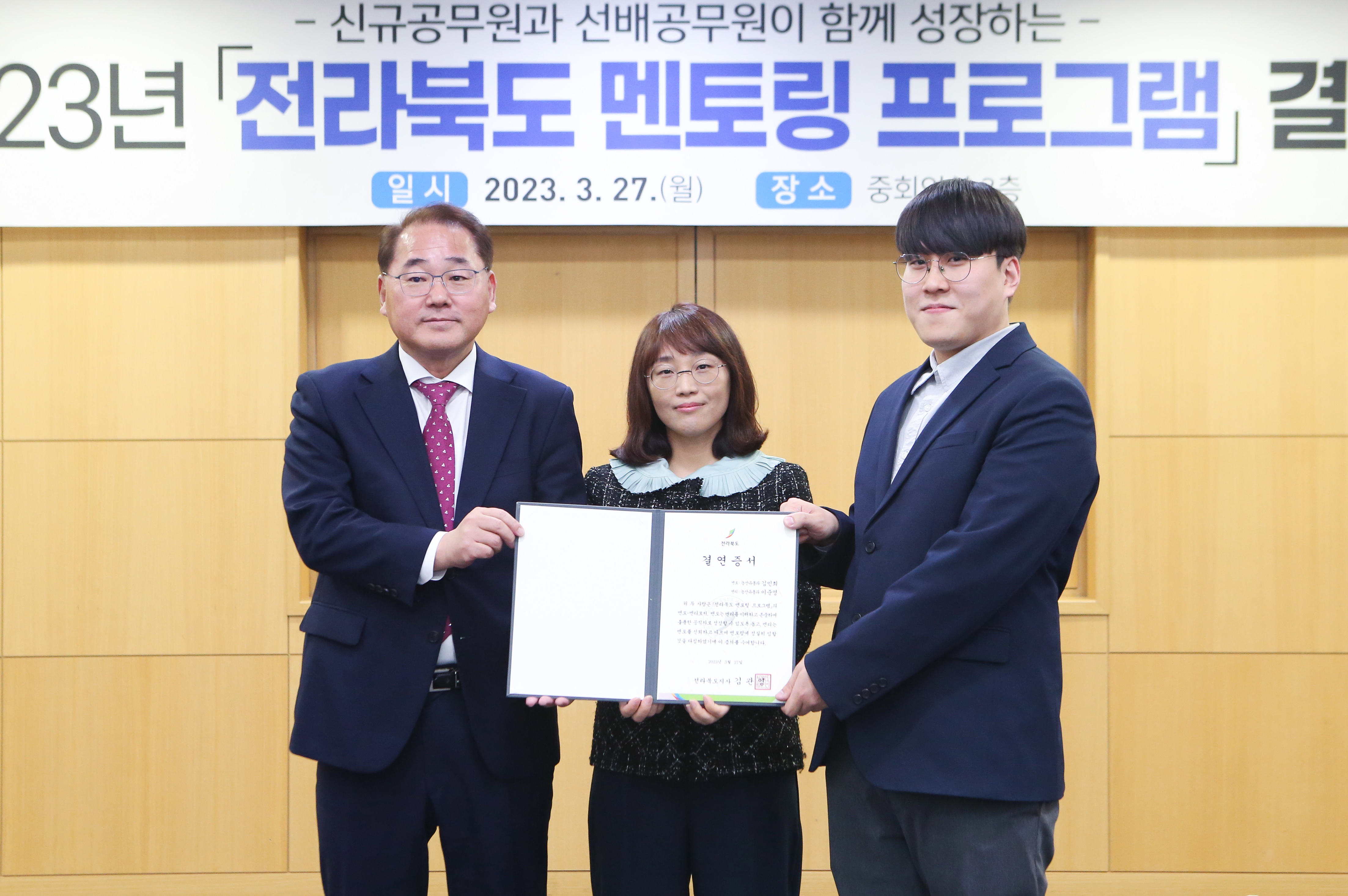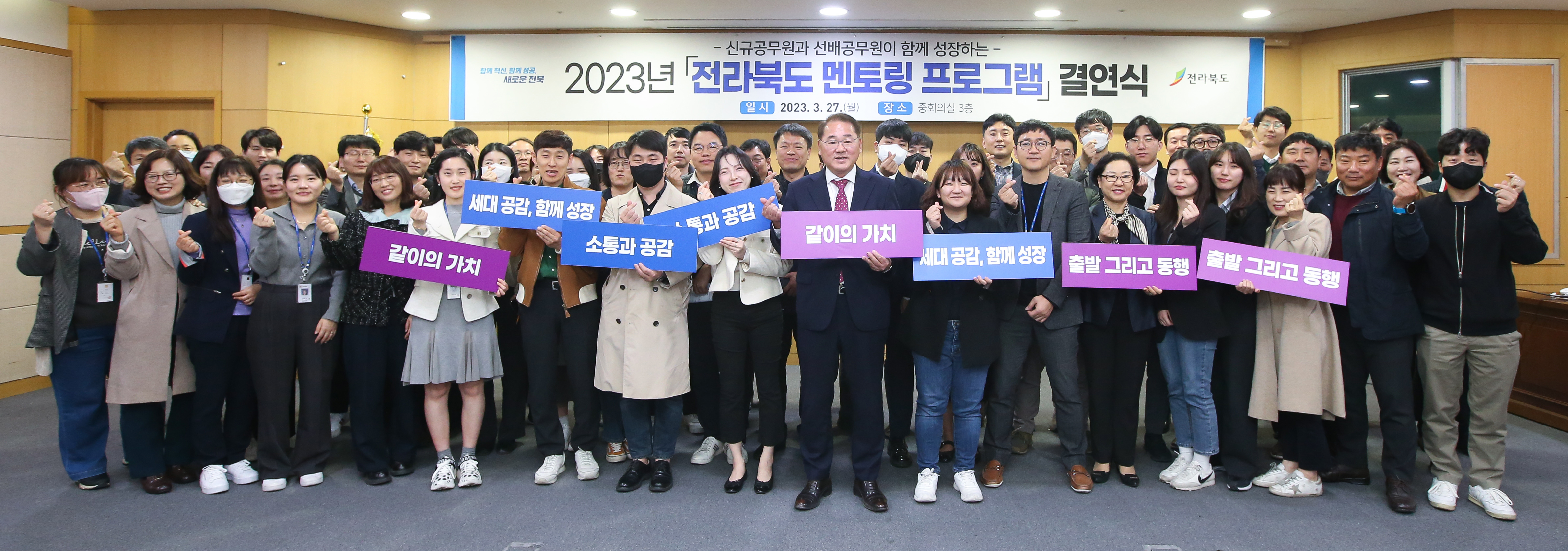 전북도는 3월 27일 신규-선배 공무원 100여명이 참석한 가운데 멘티-멘토 결연식을 갖고, 멘토인 선배공무원을 대상으로 멘토링 노하우와 소통방법 등 기본 교육을 실시했다.