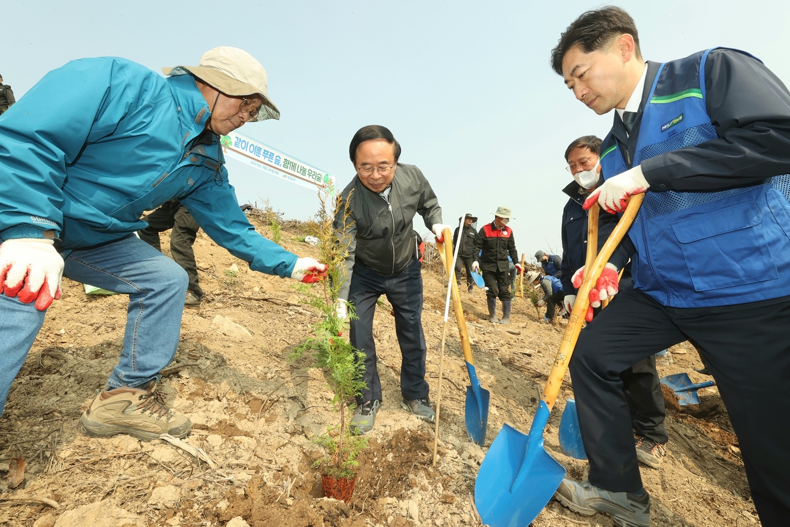 행사는 성수면 월평리 산 68-2번지에서 코로나19로 인해 3년 만에 열렸으며, 1ha의 면적에 편백나무 1,500본을 식재했다.