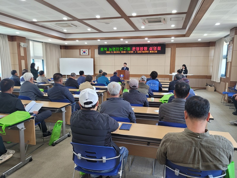 무주군농업기술센터는 29일 농업기술센터 세미나실에서 50여명의 품목별 농업인연구회 대표들이 참석한 가운데 올해 연구회 운영방향 설명회를 열고 농업과 관련된 정보를 교환했다.