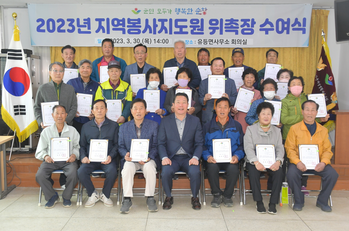 • - 3월 20일부터 4월 5일까지 군 전체 경로당 회장·총무에‘지역봉사지도원’위촉장 수여 -