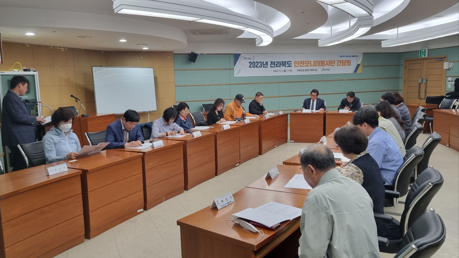 [도정=뉴전북] 5월 31일까지 봄철 안전위험요인 집중신고 기간이 운영되고 있는 가운데 전라북도는 지난 1일 ‘안전모니터봉사단 간담회’를 열고 안전신고 활성화 및 안전모니터봉사단 운영 활성화 방안을 논의했다.