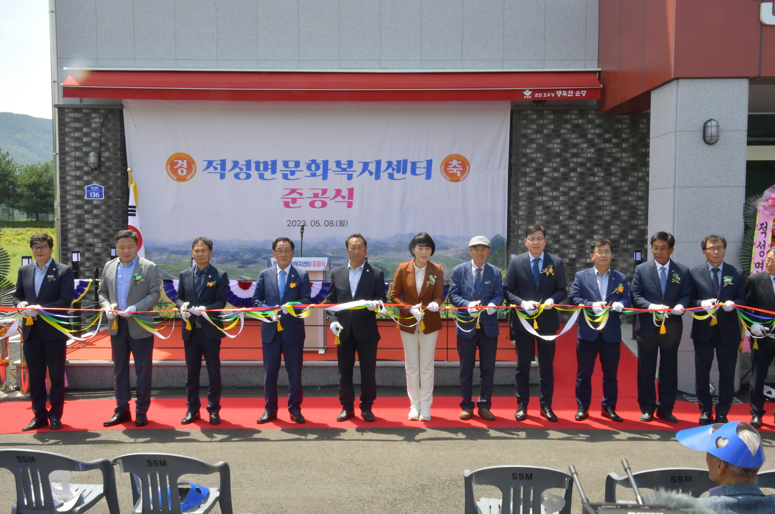 이날 준공식에서 정화영 부군수는 축사를 통해 “적성면민들의 수고와 노고로 진행해 온 사업의 준공식을 하게 되어 기쁘게 생각한다”며 “이러한 시설들을 적성면민들이 잘 활용하여 주민들에게는 따뜻한 복지 나아가서는 살기 좋은 적성면의 정주인구 증대에 기여하기를 기대한다”라고 말했다.