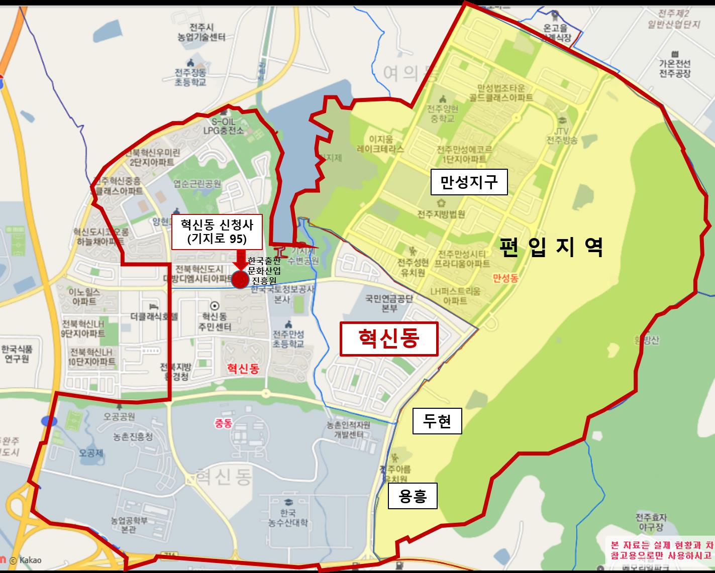 [전주=뉴전북] 전주시 덕진구 여의동에 속했던 만성지구와 인근 두현·용흥마을이 오는 6월 30일부터는 혁신동으로 편입된다.