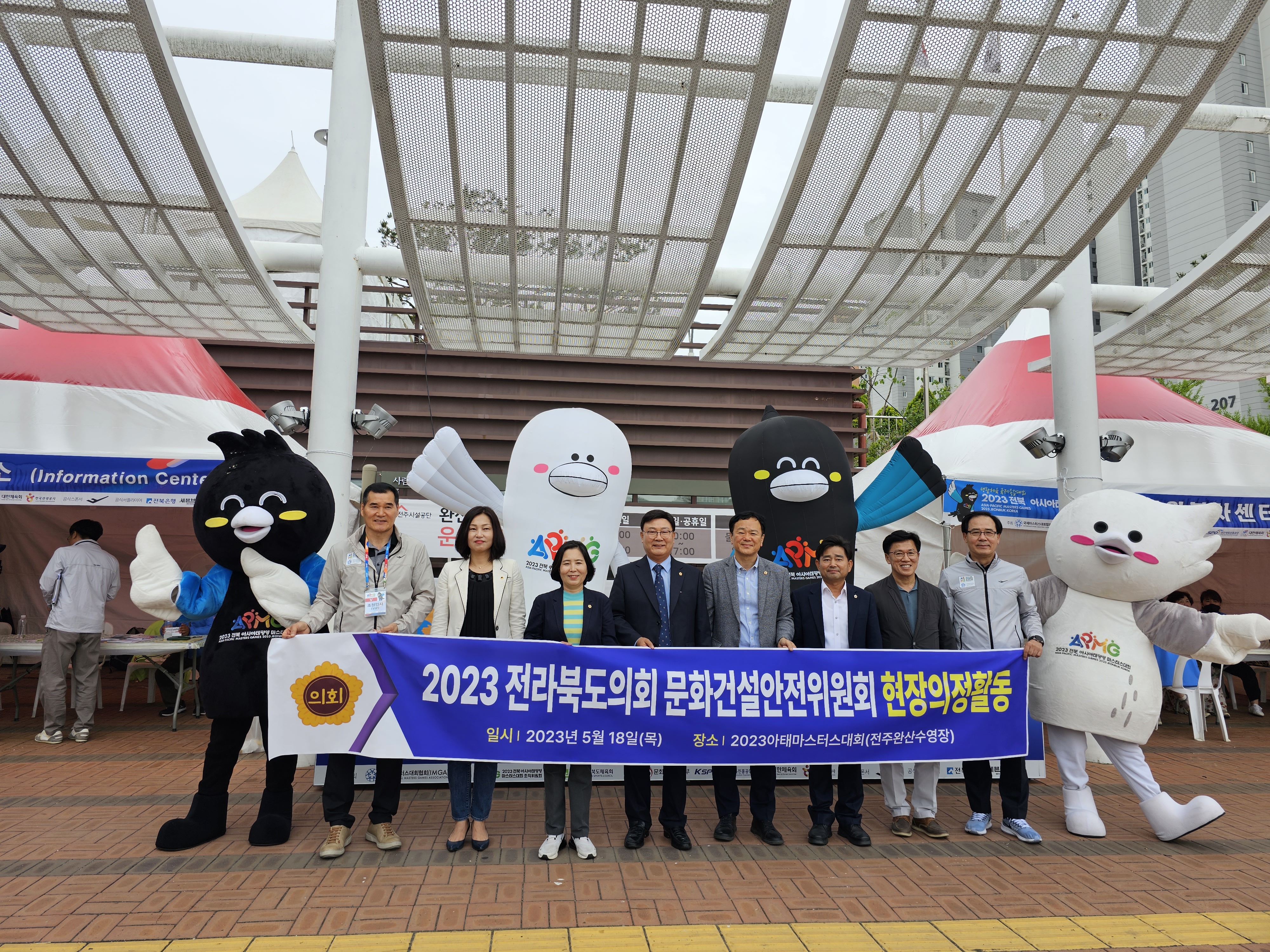 [정치=뉴전북] 전북도의회 문화건설안전위원회(위원장 이병도)는 지난 18일 제400회 임시회 기간 중 2023 전북 아시아·태평양 마스터스대회 수영경기가 열리고 있는 전주완산수영장을 방문하여 경기운영 현황을 청취하고 경기를 참관하는 등 현지의정활동을 펼쳤다.
