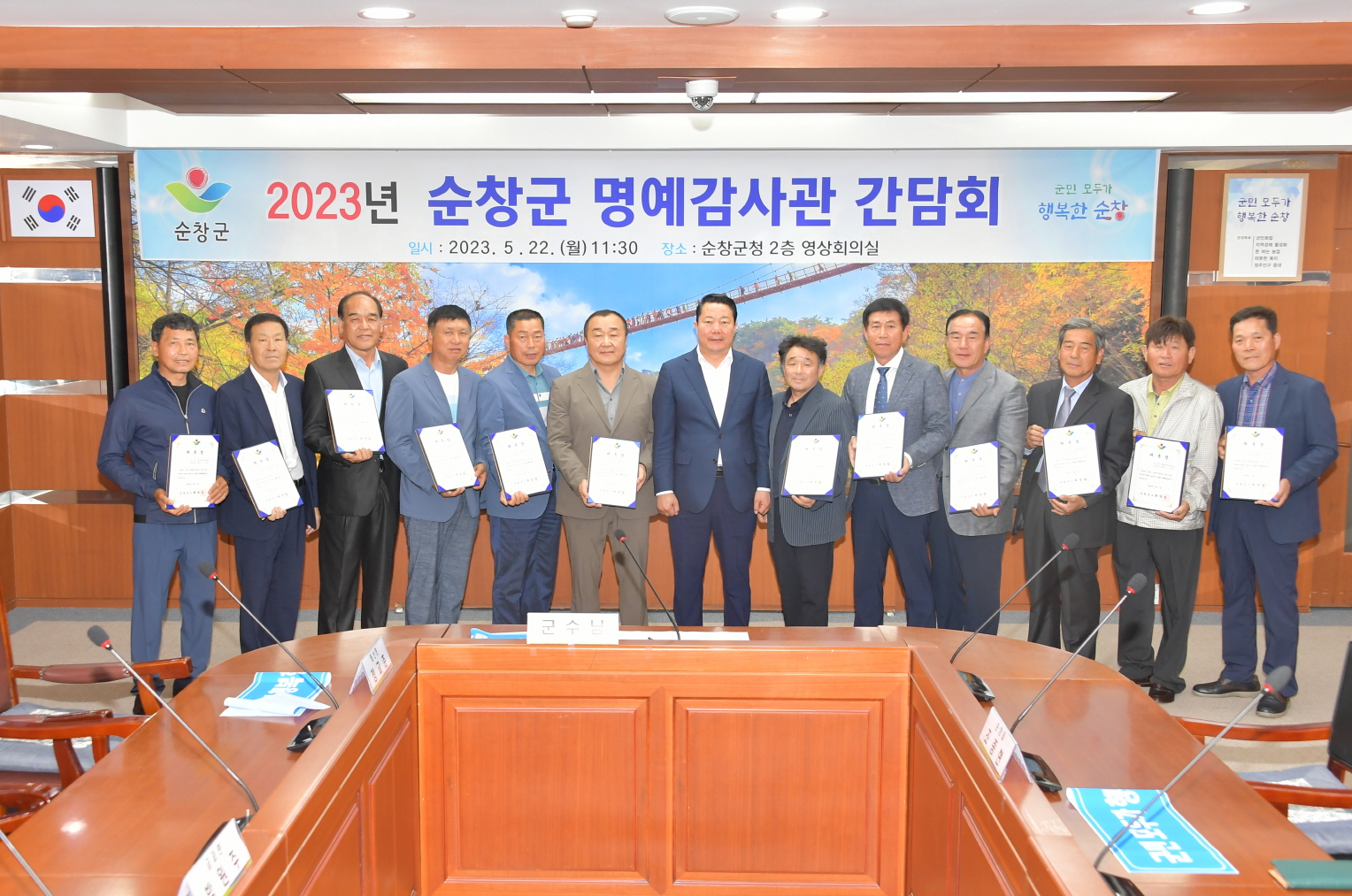 [순창=뉴전북] 전북 순창군이 22일 군청 2층 영상회의실에서 군민에게 신뢰받는 청렴 감사 행정을 구현하기 위해 위촉된 2023년도 순창군 명예감사관들에게 위촉장을 수여하고 간담회를 실시했다.
