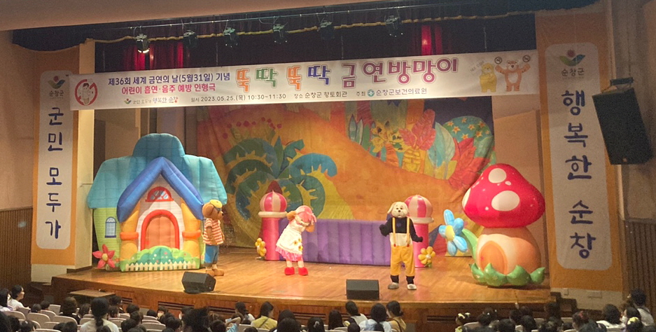 조석범 보건의료원장은 “제36회 세계 금연의 날을 맞이하여 다양한 흡연예방 공연과 교육을 통해 아이들이 올바르고 건강한 생활습관을 형성하는 계기가 되길 바란다”면서 “앞으로도 찾아가는 금연교육, 홍보 캠페인 등 다양한 금연사업을 통해 담배연기 없는 건강한 순창을 만들도록 노력할 것”이라고 밝혔다.