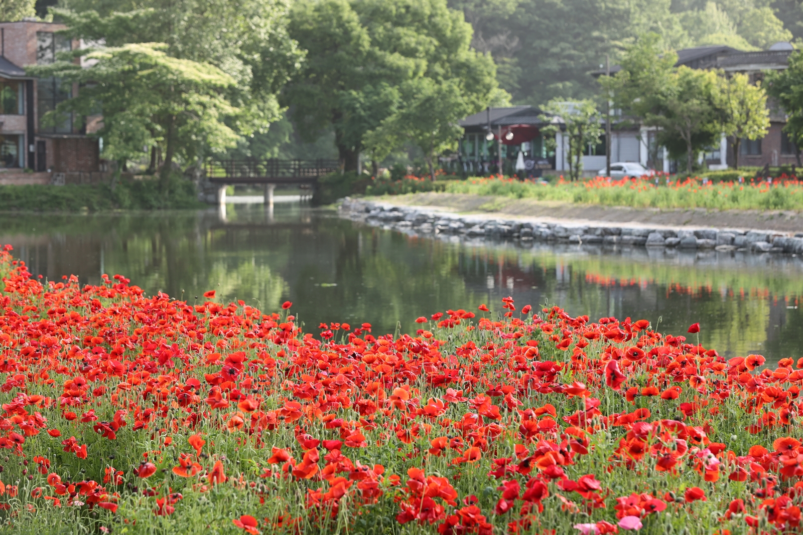 이곳에 수국 등 관목류와 단년생 및 다년생 초화류를 함께 심어 붉은 꽃양귀비와 또 다른 조화로운 매력을 뿜어내고 있다.