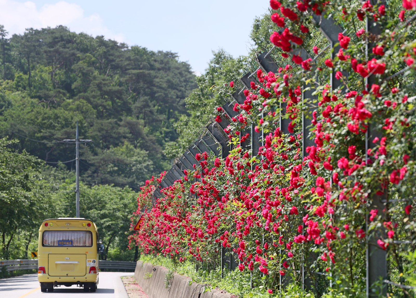 [임실=뉴전북] 전북 임실군이 옥정호 순환도로 일원에‘꽃의 여왕’이라 불리는 장미꽃이 활짝 피어 이용객들의 눈과 코를 기쁘게 해주고 있다.