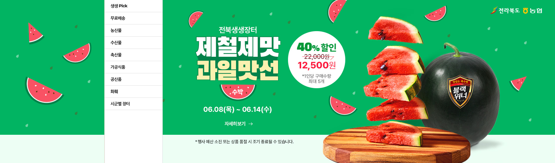 [도정=뉴전북] 전라북도가 제철제맛 과일맛선 기획전의 올해 첫 번째 품목으로‘삼례 블랙위너 수박’을 선정․판매한다.