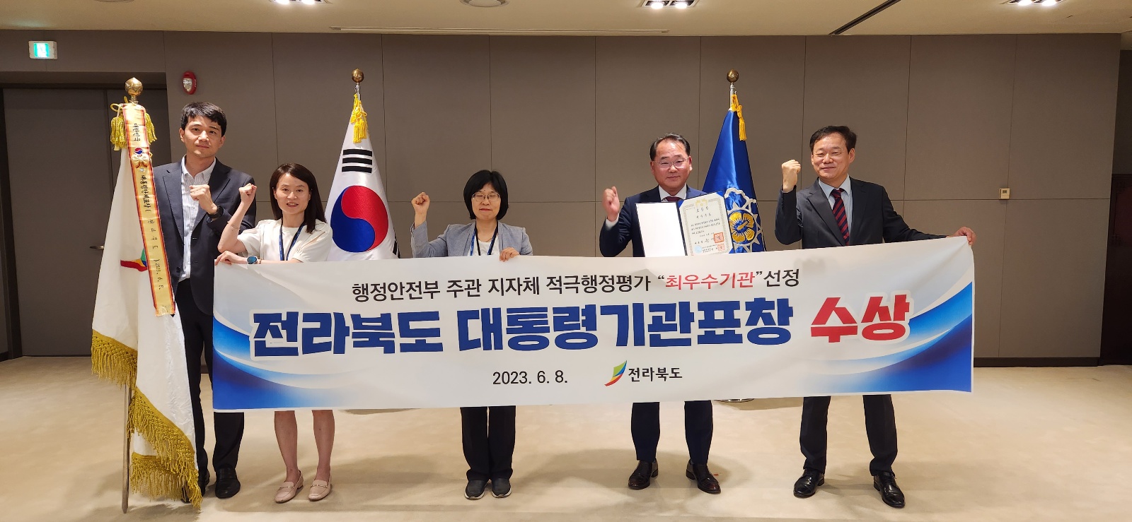 [도정=뉴전북] 전북도가 행정안전부가 주관하는 2022년 지방자치단체 적극행정 종합평가에서 최우수기관으로 선정돼 대통령 기관표창을 수상하고, 특별교부세 1억 원을 확보했다