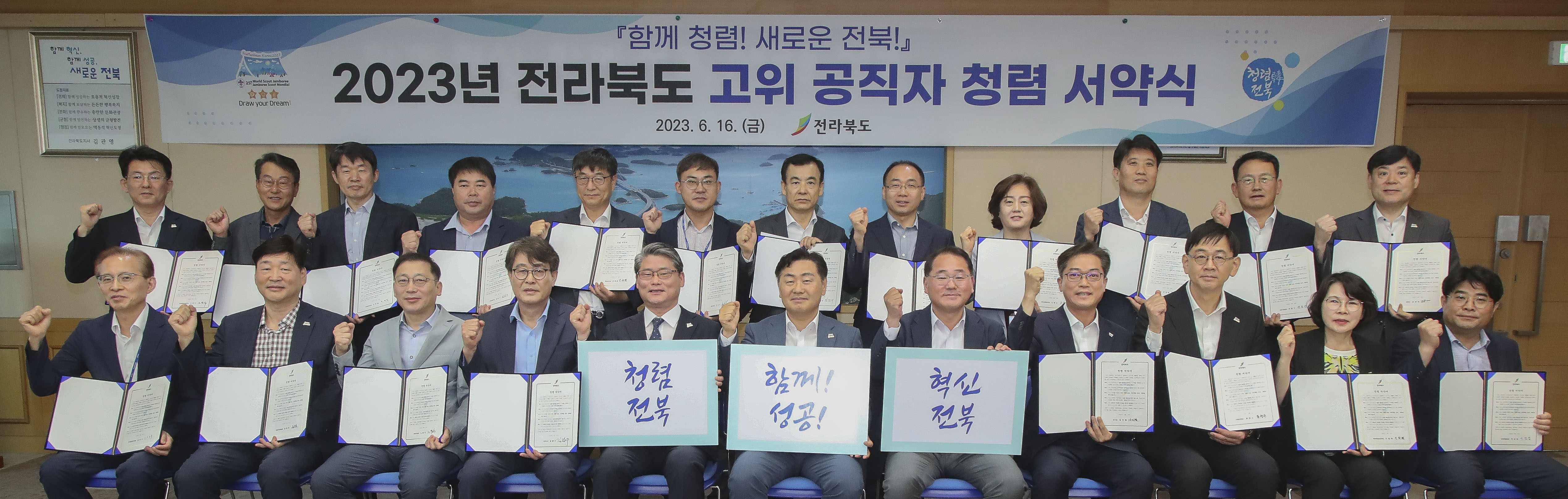 전북도는 16일 도청 회의실에서 김관영 도지사와 실·국·원장급 이상 고위직 공무원 25명이 참석한 가운데 ‘2023년 고위공직자 청렴서약식’을 가졌다.