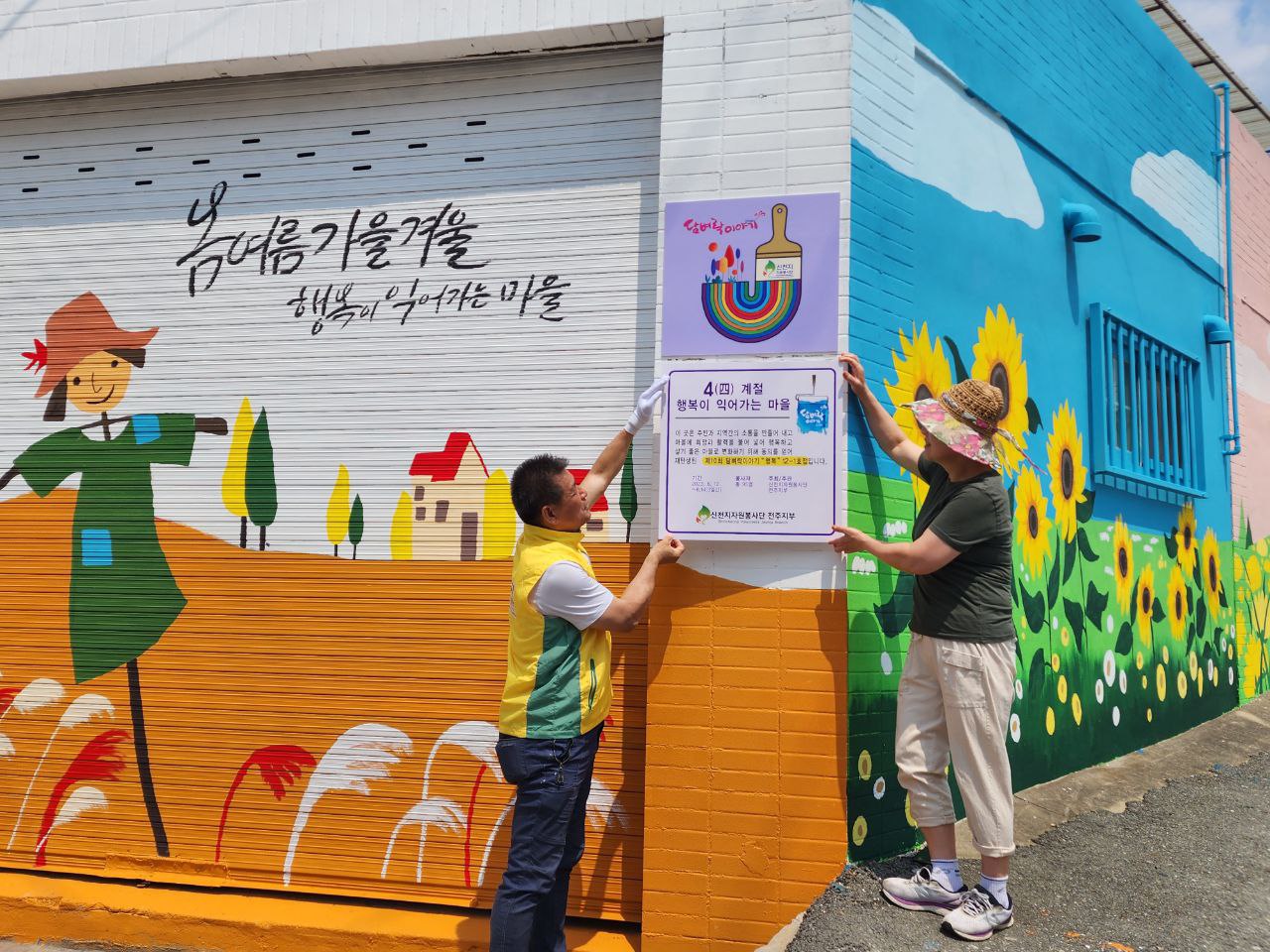 [사회=뉴전북] 신천지자원봉사단 전주지부는 지난 12일부터 전주시 덕진구 송천동(개인소유 주택)에서 시작한 담벼락이야기 벽화봉사활동을 마치고 현판식을 진행했다.