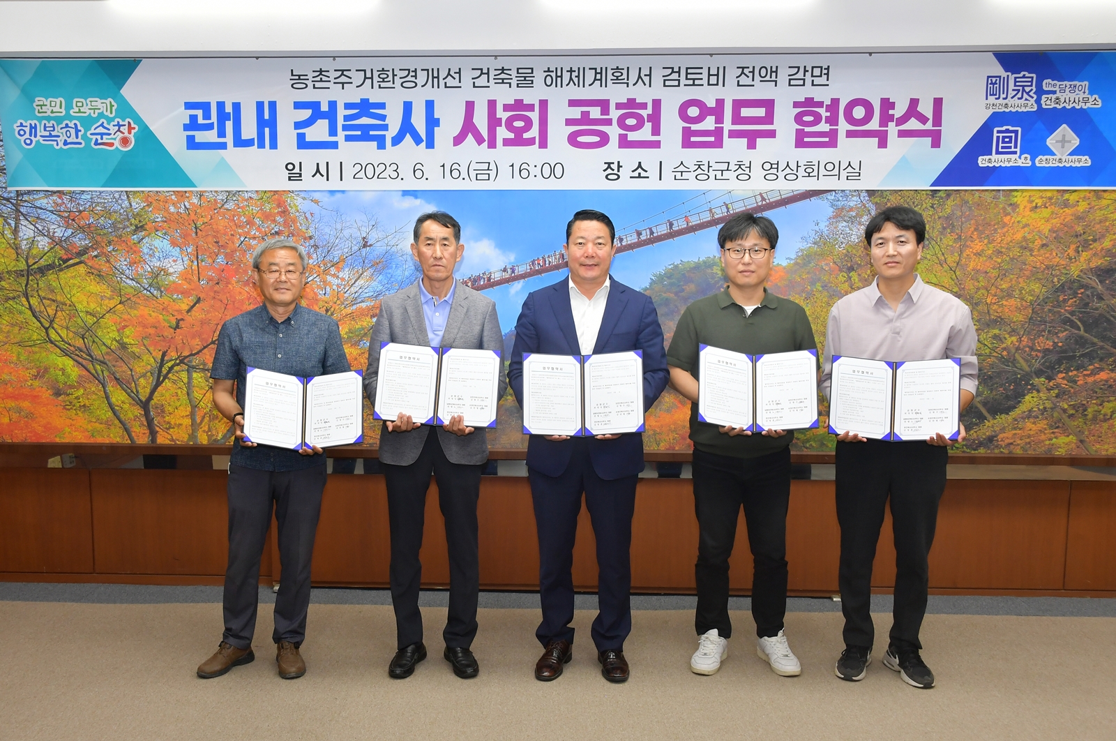 한편, 이번 협약을 맺은 관내 건축사는 강천건축사무소, 담쟁이 건축사무소, 순창건축사무소, 한 건축사사무소이다.