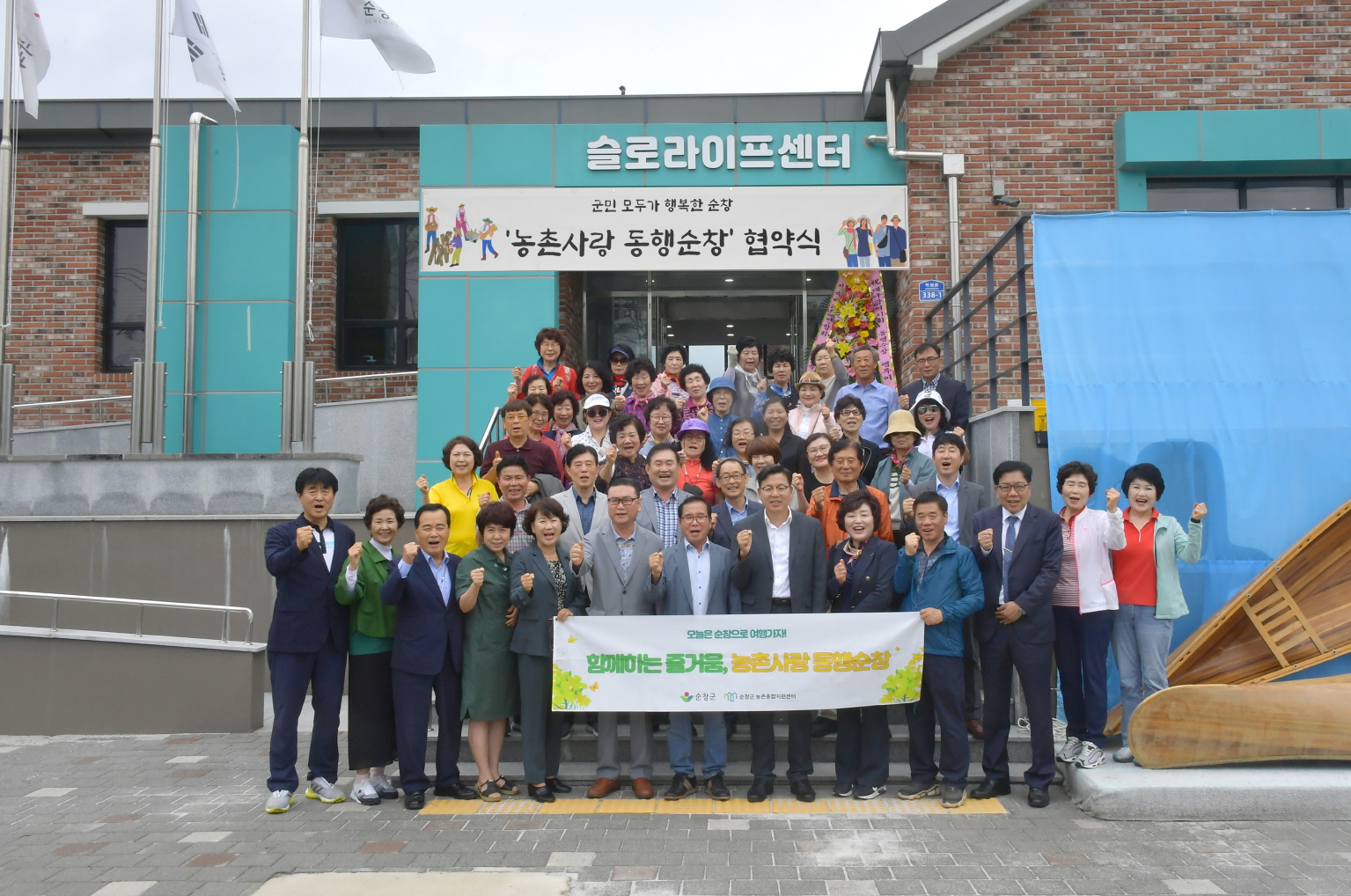 군은 이날 적성 슬로 라이프센터에서 농촌사랑 동행순창 사업설명회를 개최하여 ‘전국아파트연합회 대구광역시회’,‘평리푸르지오아파트 자치회’,‘성서동서화성타운아파트 부녀회’등 30개소와 협약을 체결했으며, 아울러 슬로 공동체 권역, 강천힐링스파, 순창로컬푸드 일원에서 팸투어 체험을 함께 진행했다.
