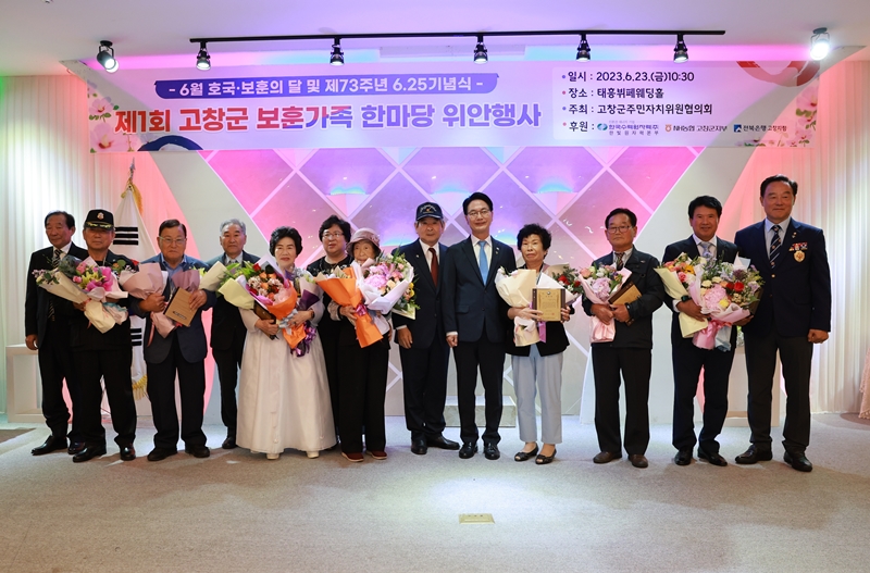 [고창=뉴전북] 고창군이 23일 오전 태흥뷔페웨딩홀에서 국가유공자와 보훈가족을 초청해 ‘제1회 고창군 보훈가족 한마당 위안행사’를 열었다.
