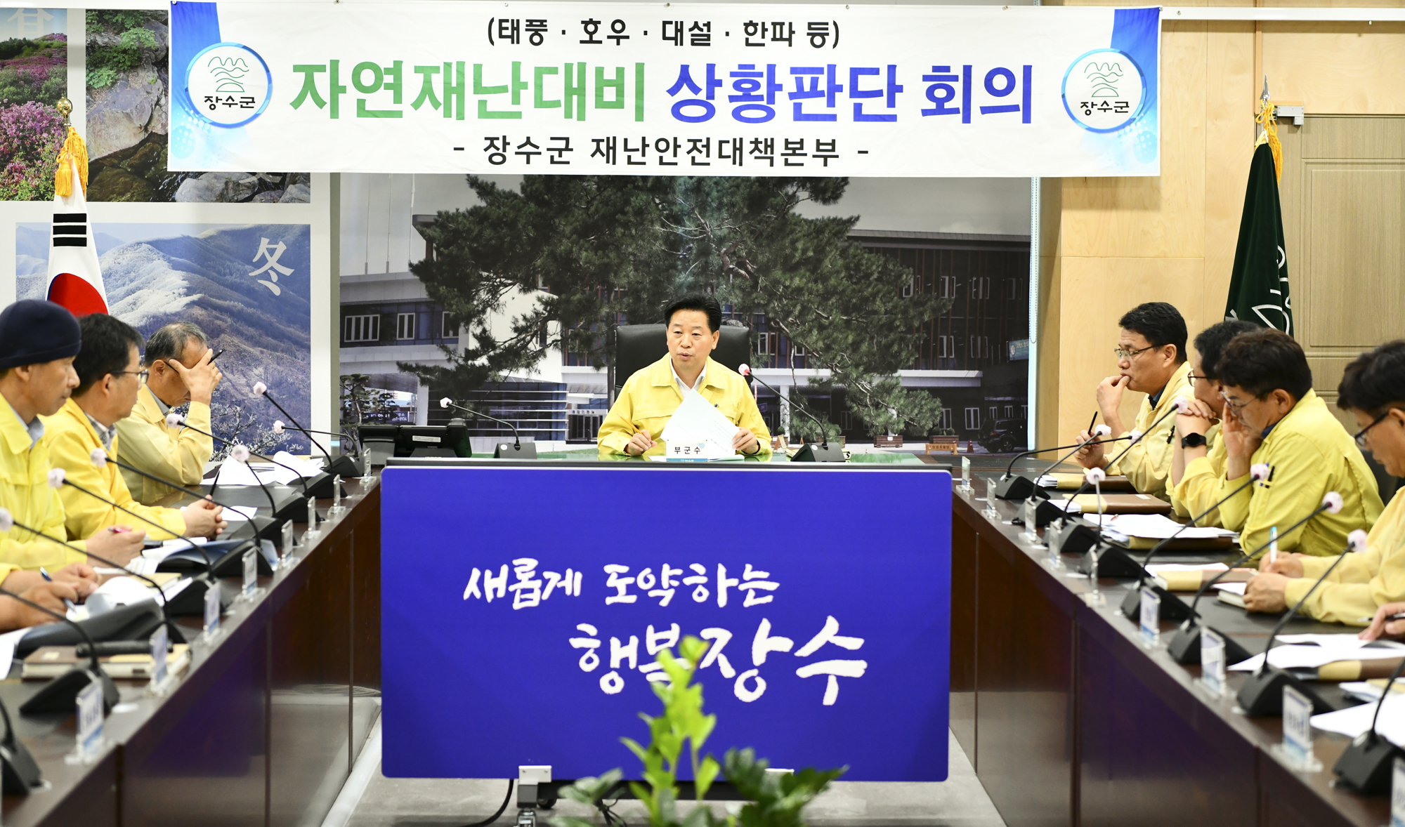 이종훈 장수군 부군수는 “많은 비가 온 지 얼마 되지 않아 다시 호우가 예보된 만큼 인명 및 재산 피해가 발생하지 않도록 각 부서에서 사전에 예방과 점검을 철저해 해달라”며 “특히 농경지 침수, 산사태, 축대 붕괴 등의 피해가 발생하지 않도록 유의해 주시고, 계곡이나 하천 등에서도 안전사고에 각별히 신경 써달라”고 당부했다.