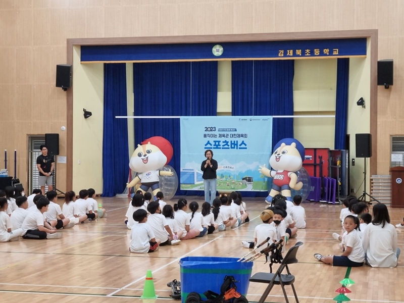 [김제=뉴전북] 김제시체육회(회장 한유승)는 지난 28일 김제북초등학교에서 체험형 프로그램과 스포츠버스, 작은 운동회를 개최했다.