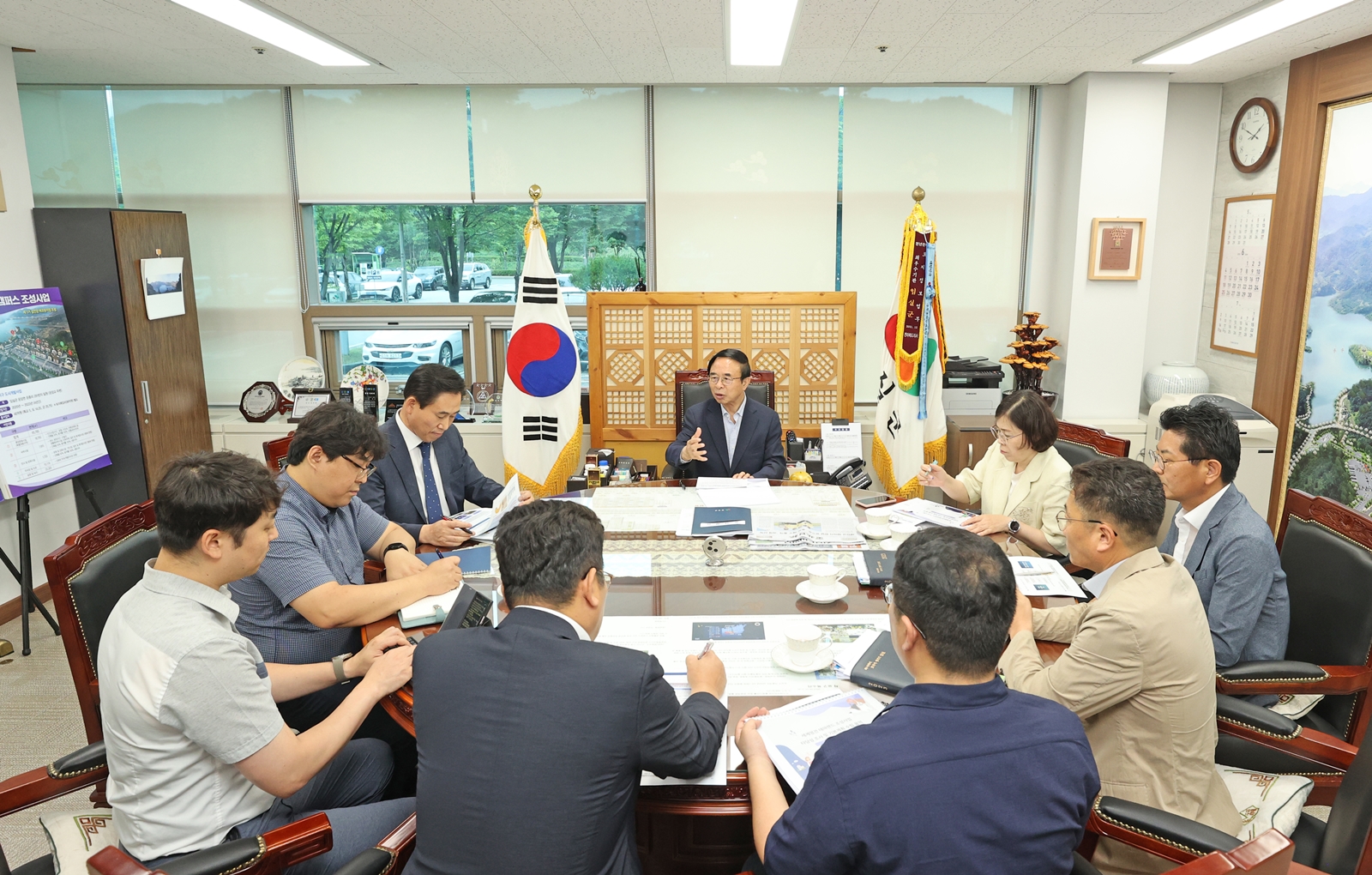이날 착수보고회에는 심 민 군수와 김학모 한국자치경제연구원장 등을 비롯해 전문가 10여 명이 참석해 사업의 추진 방향에 대하여 심도 있는 논의를 진행했다.